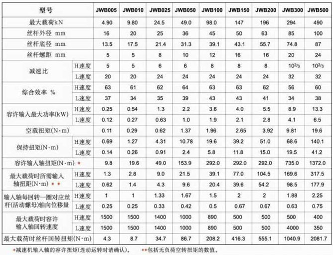 JWB滾珠絲桿升降機(jī)基本型號參數(shù)表