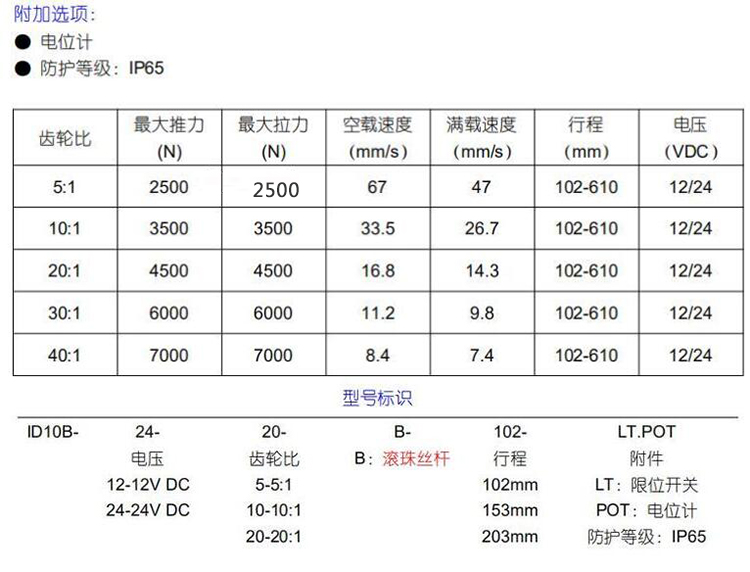 內(nèi)置限位開關(guān)(可達300W次),可實現(xiàn)行程可隨意停止,并具備自鎖能力